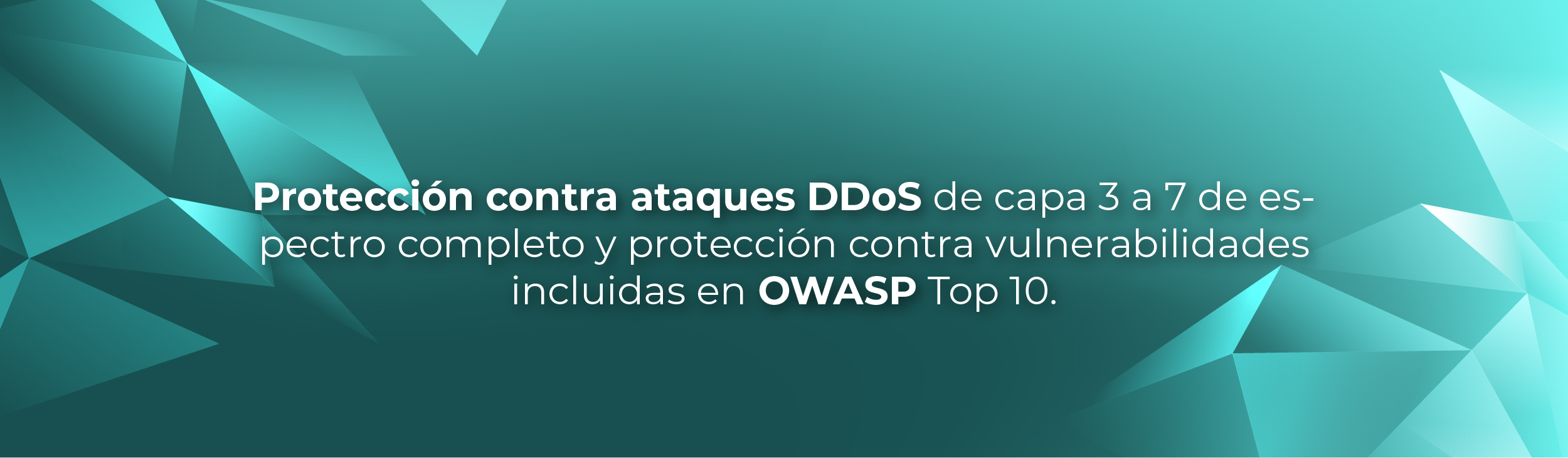 • Protección contra ataques DDoS de capa 3 a 7 de espectro completo y protección contra vulnerabilidades incluidas en OWASP Top 10.