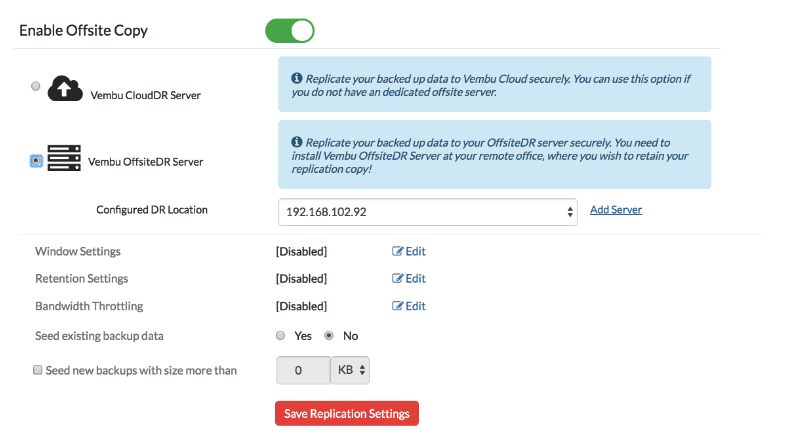 • Backup local y replicación en la nube con Vembu Cloud DR